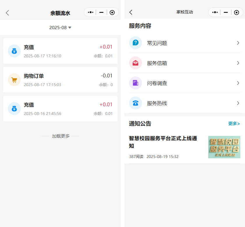 家长通过微信服务通知或关联小程序,可随时查看学生的历史消费记录(按时间、金额、商品类型分类),清晰掌握学生的消费习惯(如是否频繁购买非必需品)。